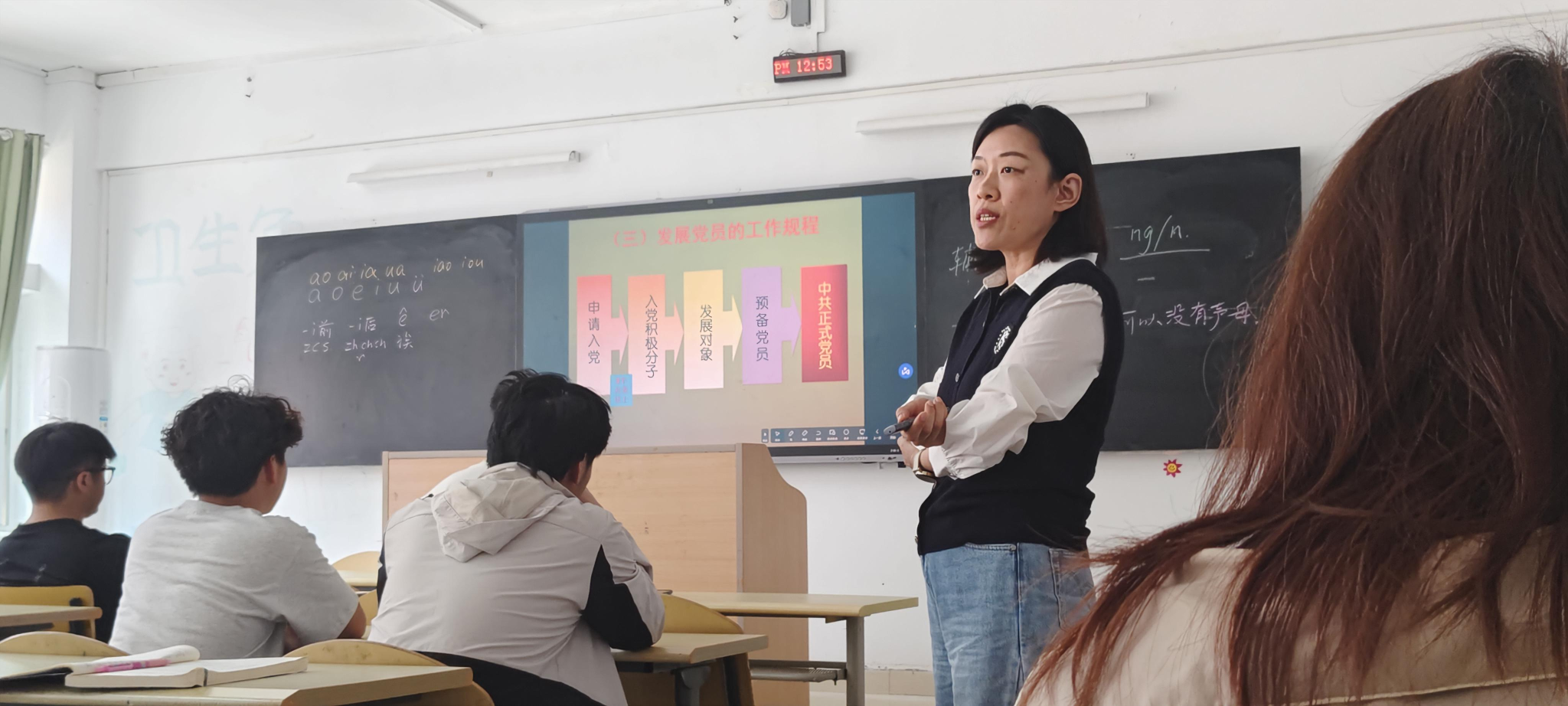 学院党委副书记吴丽给入党积极分子讲解入党程序