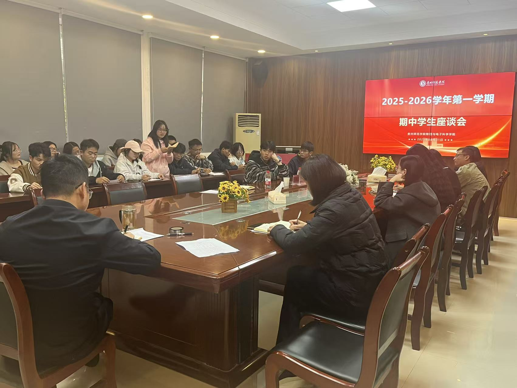 为及时掌握本学期教学运行情况,精准了解学生学习生活诉求,持续优化教学管理与育人服务,10月31日下午,动漫之家 在宁静楼419会议室召开2025-2026学年第一学期期中学生座谈会。学院党委书记熊德永、院长刘高福、副院长蔡晶、副书记吴丽,各专业系主任、年级辅导员、教研室主任及部分任课教师参会,各专业班级班长、学习委员及学生代表共同参会。本次会议由教学科研实践管理科科长岳天天主持。 会上,学生代表们围绕学习生活实际积极发言,从多维度反馈问题与建议。在教师课堂教学方面,学生提出部分课程课件更新不及时、大班教学质量不高等问题;班级学风建设上,有代表针对班级考勤管理提出了问题和建议,希望学院加强出勤管理和惩罚措施;教学管理层面,学生希望优化课程安排冲突协调机制;日常生活中,宿舍设施维护不及时、体育馆场地免费开放时间不足等问题被提及;此外,针对考证考研需求,学生们还咨询了备考资源获取、专业方向选择等相关问题,现场交流氛围热烈坦诚。 针对学生提出的问题与建议,学院领导及各科室负责人逐一耐心解答。刘高福表示,学生反馈是学院工作改进的重要依据,对能即时解决的问题将尽快落实;蔡晶副院长重点回应教学相关诉求,明确会第一时间与涉及的任课教师沟通,督促调整教学方法、更新教学资料;吴丽副书记则针对学生生活诉求承诺,将及时整理反馈至学校后勤管理处,推动宿舍生活服务优化;熊德永强调,学院始终以学生为中心,后续会建立问题跟踪机制,确保学生诉求“件件有回应、事事有着落”。 此次期中学生座谈会搭建了学院与学生高效沟通的桥梁,不仅为学院精准改进教学管理、提升服务质量提供了方向,也进一步增强了学生参与学院建设的主动性。未来,动漫之家 将持续完善常态化沟通机制,切实解决学生急难愁盼问题,为学生成长成才保驾护航。 文/图:岳天天 一审:岳天天 二审:蔡晶 终审:刘高福