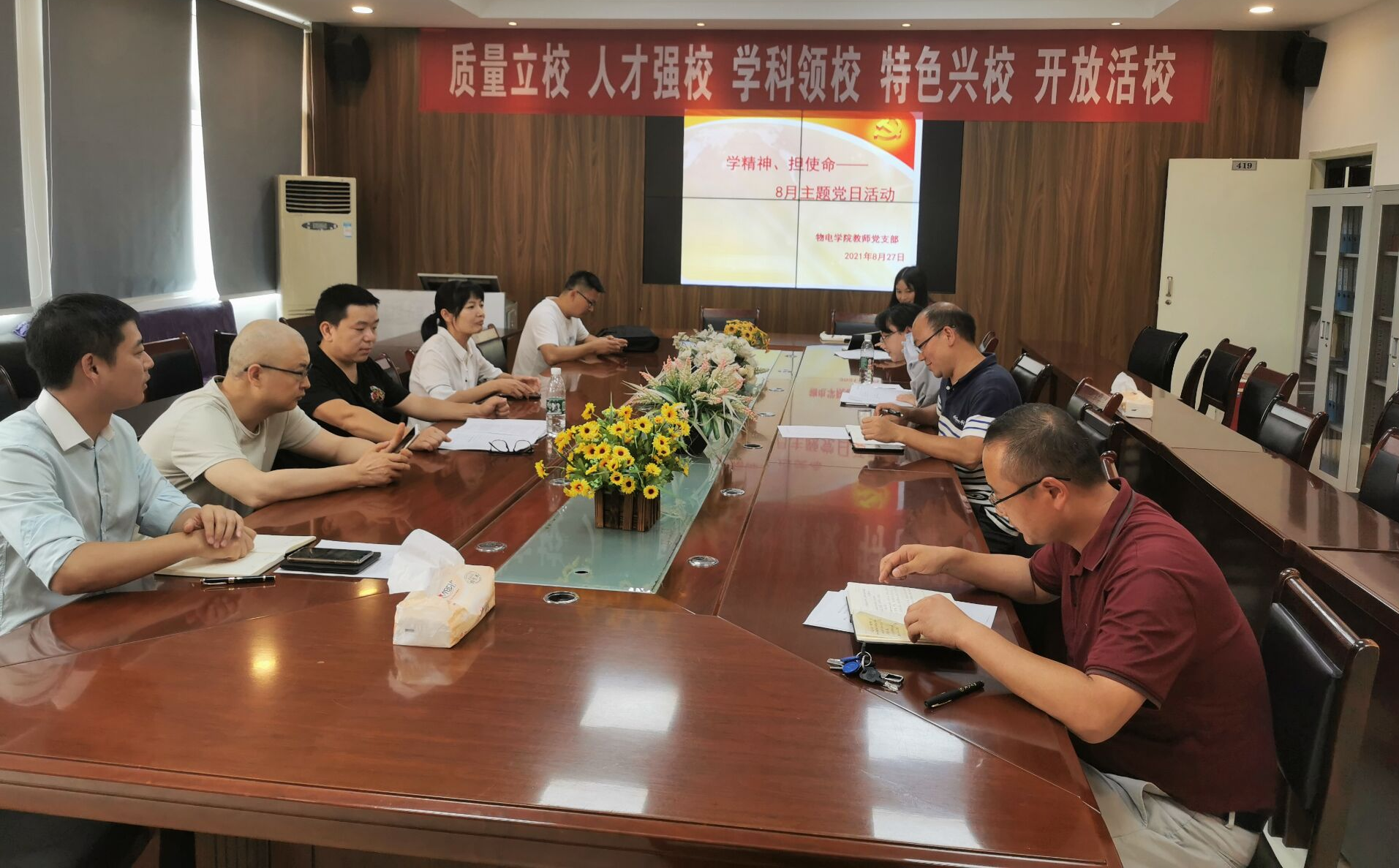 8月27日,动漫之家 教师党支部在宁静楼419会议室开展主题党日活动,活动主题为“学精神,担使命”,支部书记刘家兴主持并领学了习近平总书记在河北承德、西藏考察时的重要讲话精神以及《学史明理、学史增信、学史崇德、学史力行》等重要文章,全体党员教师参加会议。 习近平总书记在河北承德考察时强调要全面贯彻新发展理念,弘扬塞罕坝精神,统筹疫情防控和经济社会发展的各项工作。接着,刘家兴带领全体党员教师学习习近平总书记在西藏考察期间重要讲话精神。习近平作为中共中央总书记、国家主席、中央军委主席到西藏庆祝西藏和平解放,在党和国家历史上是第一次,充分表达了党中央对西藏工作的支持、对西藏各族干部群众的关怀。最后,学习了习近平总书记在《求是》杂志上发表的《学史明理、学史增信、学史崇德、学史力行》等重要文章。 此次主题党日活动主题突出,学思结合,对党史教育具有推动性作用,党员教师敞开心扉,分享心得体会,畅谈思想认识,并结合教学岗位实际交流了新思路和新措施。党员教师表示将继续深化党史知识的学习掌握,强化履职尽责。