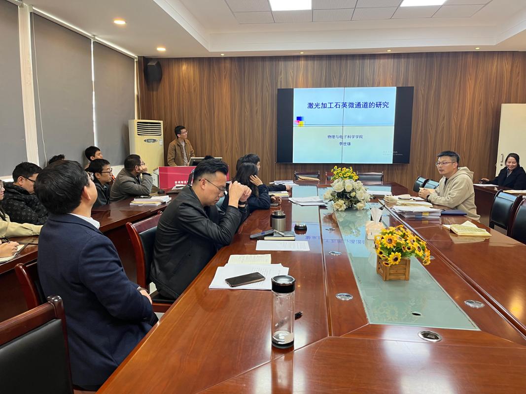 为进一步搭建高层次学术交流平台,拓展学院教职工的科研视野,激发学科交叉的创新活力,11月7日,物理与电子学院于宁静楼419会议室集中举办系列学术讲座。本次讲座由物理与电子学院院长刘高福主持,特别邀请李世雄、吴永刚、陆晨三位在相关领域研究卓有心得的教师担任主讲,学院全体教职工参加了此次讲座,现场学术氛围热烈且浓厚。 首位开讲的是李世雄老师,他以《激光加工石英微通道的研究》为主题进行分享。李世雄从激光加工技术的原理优势入手,详细阐释了石英材料的物理特性对加工工艺的影响,并结合具体实验数据,展示了不同激光参数下微通道的尺寸精度、表面粗糙度等关键指标的变化规律,为微纳加工领域的研究提供了具有实用价值的技术参考。 随后,吴永刚老师带来了《过渡金属基氧、氮化物表面热力学稳定性及其物理性质的理论研究》专题讲座。他从理论计算的角度出发,系统介绍了密度泛函理论在材料性质研究中的应用,通过构建原子模型,深入剖析了过渡金属基氧、氮化物的表面结构、电子态密度及热力学稳定性之间的内在联系,其团队的研究成果为新型功能材料的设计与开发提供了重要的理论依据,引发了在场教职工对理论与实验相结合的深入思考。 最后,陆晨老师以《热等离子体动态烧结制备二氧化硅空心微球的仿真模拟》为题进行讲解。他着重介绍了仿真模拟在工艺优化中的核心作用,通过展示不同烧结温度、气体流速等参数下的仿真结果,清晰呈现了二氧化硅微球的形成过程与形貌演变规律,为实验装置的改进和工艺参数的优化提供了精准的理论指引,其新颖的研究视角使在场教职工深受启发。 每场讲座结束后,均设置了互动探讨环节。教职工们围绕激光加工设备的选型、过渡金属化合物的实际应用场景、仿真模拟软件的操作技巧等问题与主讲专家进行了深入交流。 此次系列学术讲座内容丰富、针对性强,不仅为教职工带来了相关领域的前沿知识与技术,更搭建了学术交流与合作的桥梁。未来,学院将持续常态化开展学术交流活动,不断营造浓厚的学术氛围,助力学院科研水平稳步提升。 文图:岳天天 一审:岳天天 二审:蔡晶 终审:刘高福