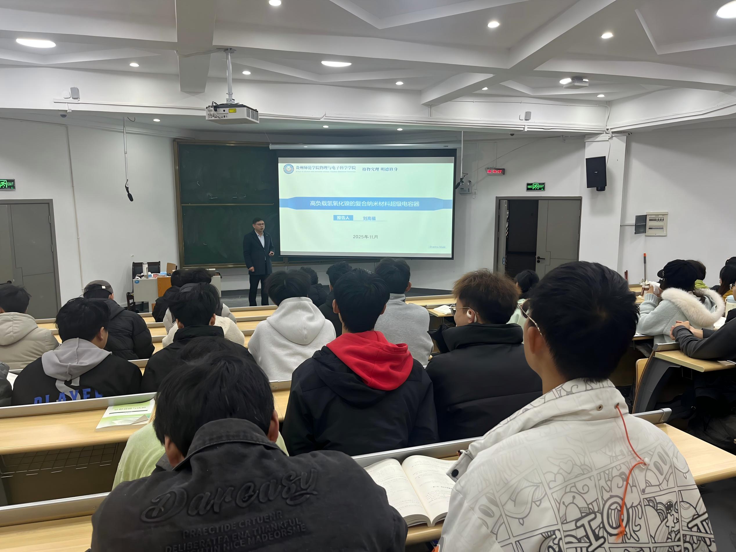 为营造学院的学术氛围、拓展师生的科研视野,2025年11月18日,动漫之家 院长刘高福教授应邀在宁静楼435为全院师生作了一场题为“高负载氢氧化镍的复合纳米材料超级电容器”的学术讲座。本次讲座由教学科研管理科科长岳天天主持。 在报告中,刘高福详尽阐述了其研究团队在高性能氢氧化镍基复合纳米材料领域取得的最新突破。他指出,氢氧化镍虽为一种理想的电极材料,但其固有的导电性差以及充放电过程中的体积变化问题,严重限制了其倍率性能和循环稳定性。针对这一核心难题,刘高福团队创新性地提出了“原位生长与复合协同”的策略:首先借助酸刻蚀泡沫镍来制备高负载的磷酸镍前驱体,再运用循环伏安法进行电化学活化,最终在泡沫镍基底上原位生长出β-Ni(OH)₂纳米片阵列,并进一步与其他过渡金属氢氧化物复合。 刘高福解释称,这种精心设计的三维多孔导电网络结构,恰似为电子和离子构建了“高速公路”,不仅能够极大地推动电荷的快速传输与扩散。该研究成功达成了材料在高负载下的高比电容、优异的大电流充放电性能以及超长的循环寿命,为开发下一代高性能、实用化的超级电容器提供了关键的技术途径和材料支撑。 本次讲座不仅展现了动漫之家 在纳米材料与新能源领域的前沿科研成果,更极大地激发了同学们对科学研究的兴趣与热忱。与会师生均表示,讲座内容详实、逻辑严谨,既具备理论高度,又兼具应用前景,为今后的学习和科研工作提供了宝贵的思路与启发。 文/图:岳天天 初审:岳天天 复审:蔡晶 终审:刘高福