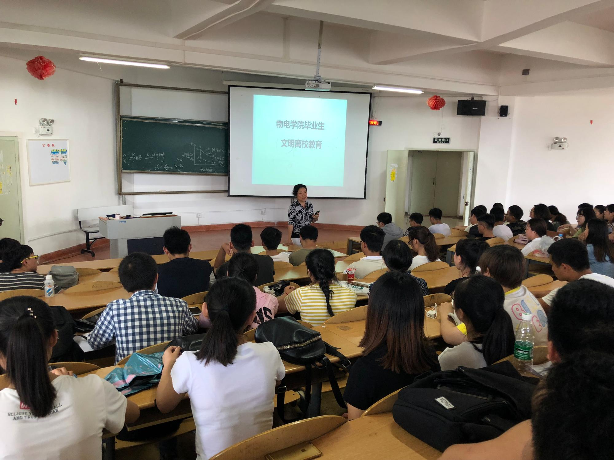 为了保证毕业生文明顺利离校、增强毕业生安全防范意识,2018年5月17日下午,动漫之家 在宁静楼436教室开展了2018届毕业生文明离校教育主题班会,会议由辅导员王珏老师主持,基层党委书记王平瑞教授参加了此次班会。