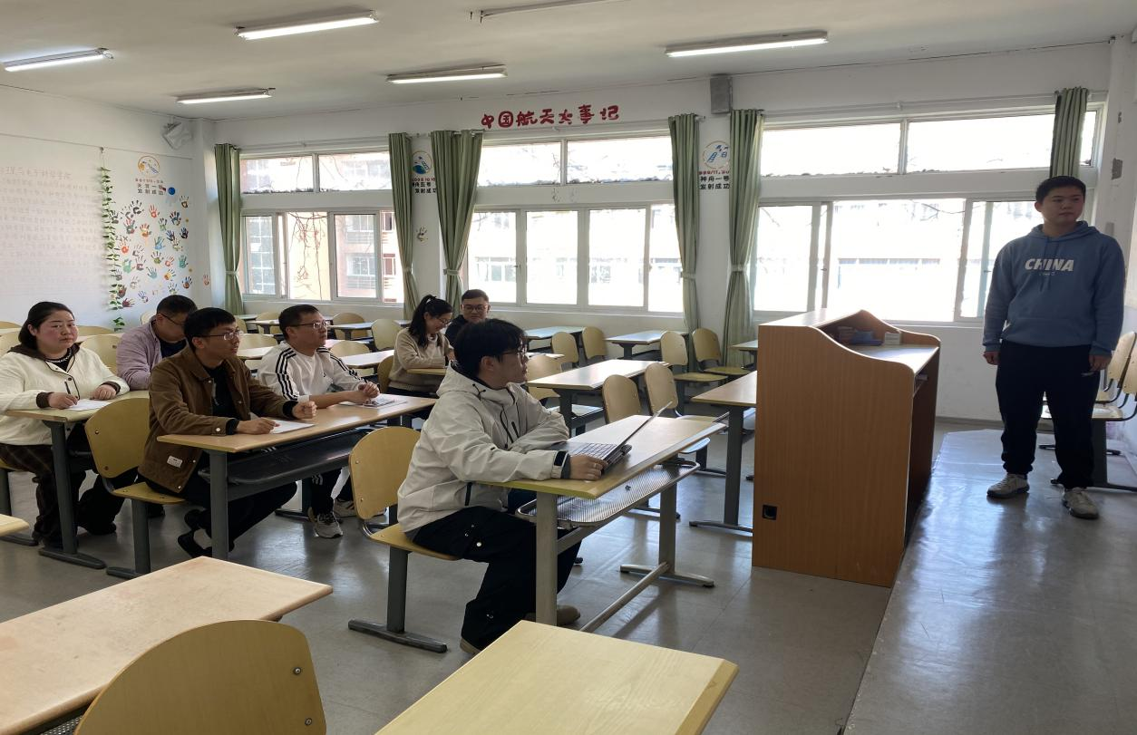 师生在认真聆听实习生汇报