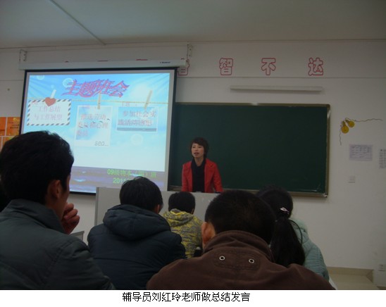 3月9号下午,09级物理学本科四班全体同学,在本班教室召开了关于大学生社会实践活动交流的主题班会。 班会由班长张其用及团支书黄小芳主持,班会活动有三个主题:(1)无记名投票选举班级心理委员;(2)社会实践心得交流,同学们积极发言,畅谈自己参与社会实践的心得体会,同学们参加社会实践活动丰富,参与春晖行动、代表乡政府送春联、为养老院打扫卫生、协助政府修路筑路、代表地方乡镇参加篮球比赛、业余时间做家教、参与社会服务活动等;(3)班干部对上学期工作进行总结,并对新学期工作进行展望。班干们均表示有信心、有决心将09物本四班建立成一个优秀的、先进的班集体。 整个班会气氛活跃,同学们畅所欲言,在一片欢笑中取得了圆满成功,辅导员刘红玲老师对此次班会活动给予了高度的肯定,同学们通过交流社会实践的经历,增强了对社会的了解,交流感知,努力学习,为自己步入社会积淀扎实的基础,通过班会,加深了同学之间的了解,增进了同学之间的友谊。