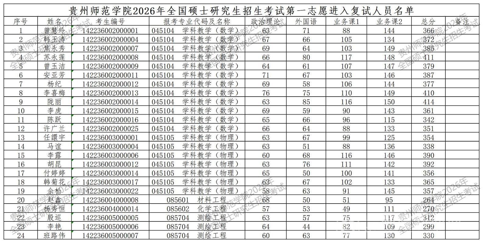 动漫之家 2026年全国硕士研究生招生考试第一志愿进入复试人员名单