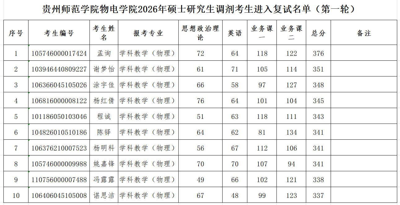 动漫之家 2026年全国硕士研究生招生考试第一志愿进入复试人员名单
