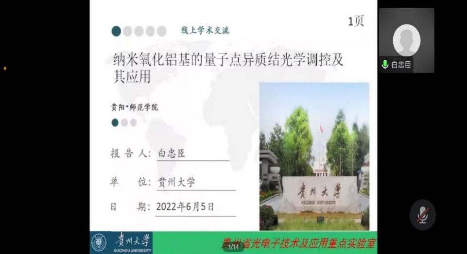 为营造良好的学术氛围,促进省内高校教师之间学术交流,2022年10月7日下午,动漫之家 特邀贵州大学医学院白忠臣教授莅临动漫之家 举行题为“纳米氧化铝基的量子点异质结光学调控及其应用”的线上学术讲座,本次讲座由动漫之家 副院长陈德良主持,动漫之家 全体教职工以及部分专业相关学生参加了此次线上讲座。 白忠臣,博士,教授,贵州大学医学院博士生导师,入选贵州省第十二批优秀青年科技人才培养计划。目前主要从事纳米光子学、光电子器件、生物医学传感器等方面的研究,包括纳米量子点的光学调控、新型钙钛矿太阳能电池、医用生物医学传感器等,主持完成了国家自然科学基金3项、多项省级科技项目。目前主持1项国家基金地区项目。在Nanotechnology、J.Opt.Soc.Am.B、journal of luminescence、Applied optics、Optical materias、Optical materials express等国际知名SCI期刊上发表论文50余篇,授权国家专利25项,获软著作权登记4项。 本次讲座,白忠臣教授主要从纳米氧化铝/CdSe量子点异质结的制备;纳米氧化铝/CdSe量子点异质结的表面增强荧光;纳米氧化铝/量子点异质结在太阳能电池中的应用三个方面介绍了纳米氧化铝基的量子点异质结光学调控及其应用,深入浅出,给所有师生普及纳米氧化铝基的量子点异质结光学调控并结合针对性案例进行详细分析其应用。讲座过程中,动漫之家 师生积极听讲,并积极与白忠臣教授进行讨论和经验分享。 讲座结束,动漫之家 师生与白教授进行了热烈交流,陈德良交流时表示,希望通过本次讲座,加强贵州大学与我校科研人员之间的学术沟通,共同在纳米氧化铝/量子点异质结研究领域取得更好的成绩。最后陈德良代表全院师生感谢白忠臣教授的莅临讲座。